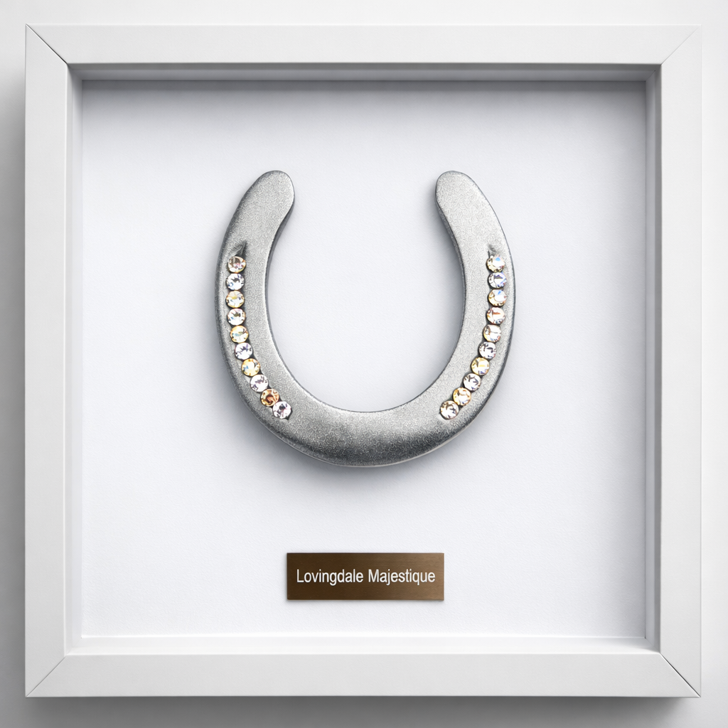 Jouw Diamond Horseshoe kun je naar wens laten maken. Hij wordt geleverd in een mooie verdiepte lijst. Deze zijn er in de kleuren wit en zwart. Er zijn verschillende kleuren diamonds en achtergronden. De basiskleuren kun je vinden in de fotogalerij maar heb je zelf wensen kunnen wij altijd met je meedenken.