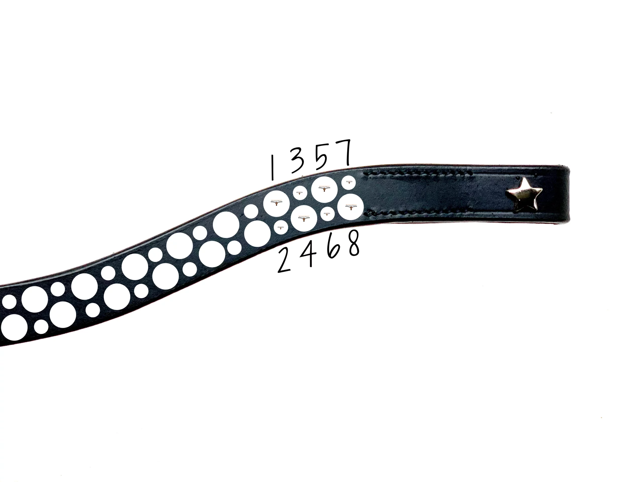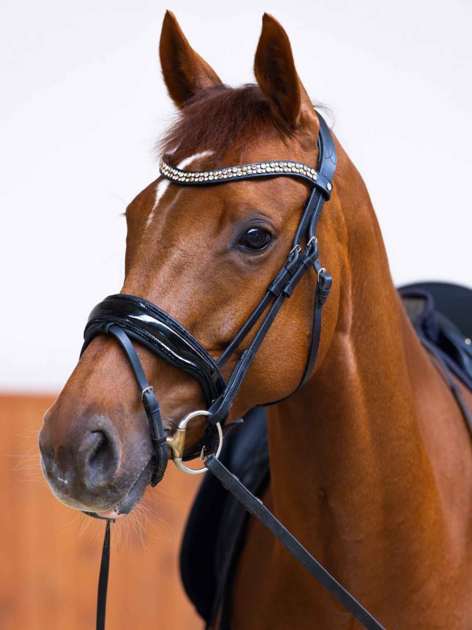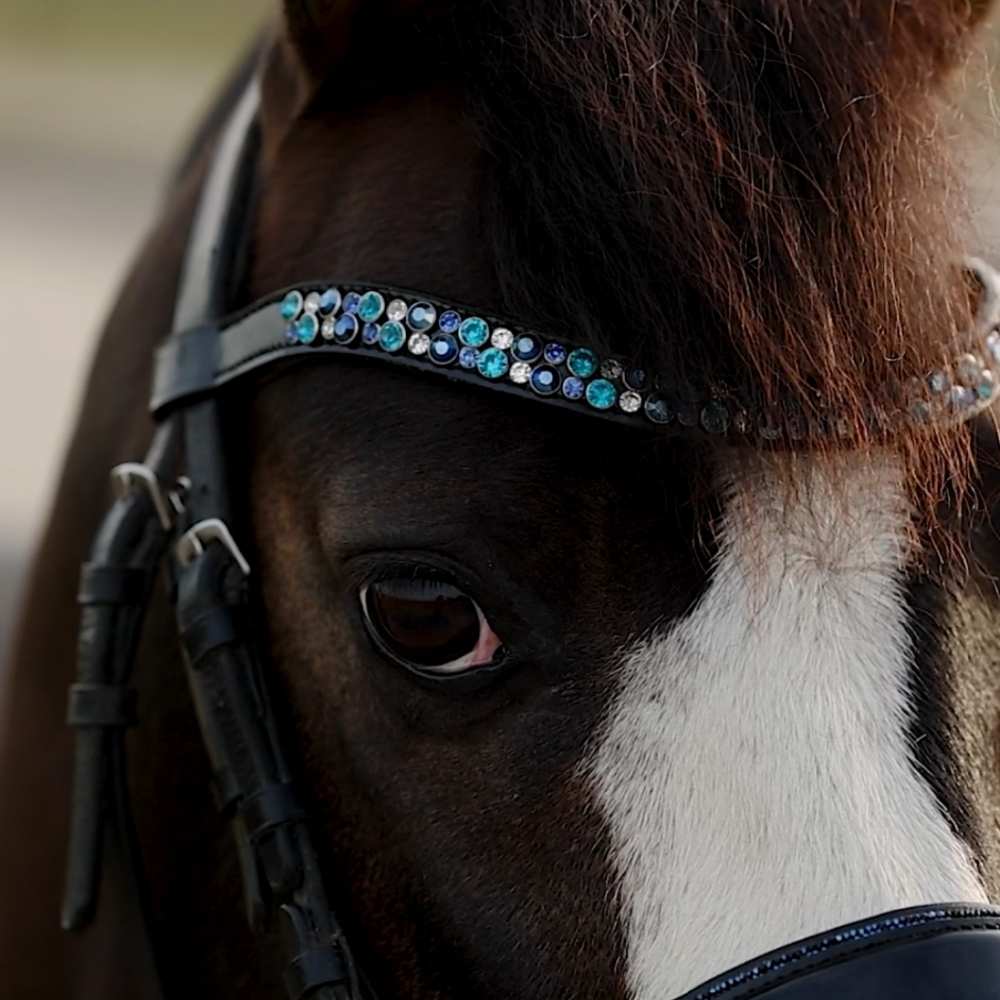 De Frontriem Extra is een brede frontriem van 18mm met een dubbele rij steentjes.
