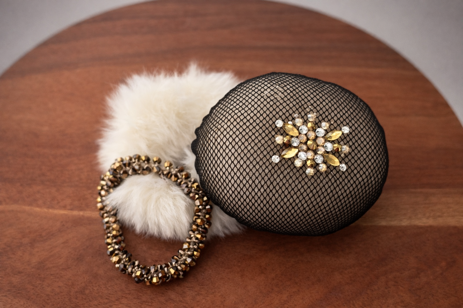 Nieuw in het assortiment zijn deze leuke haaraccessoires. Deze set bestaat uit scrunchy, kristalelastiek en haarnetje met preciosa steentjes.