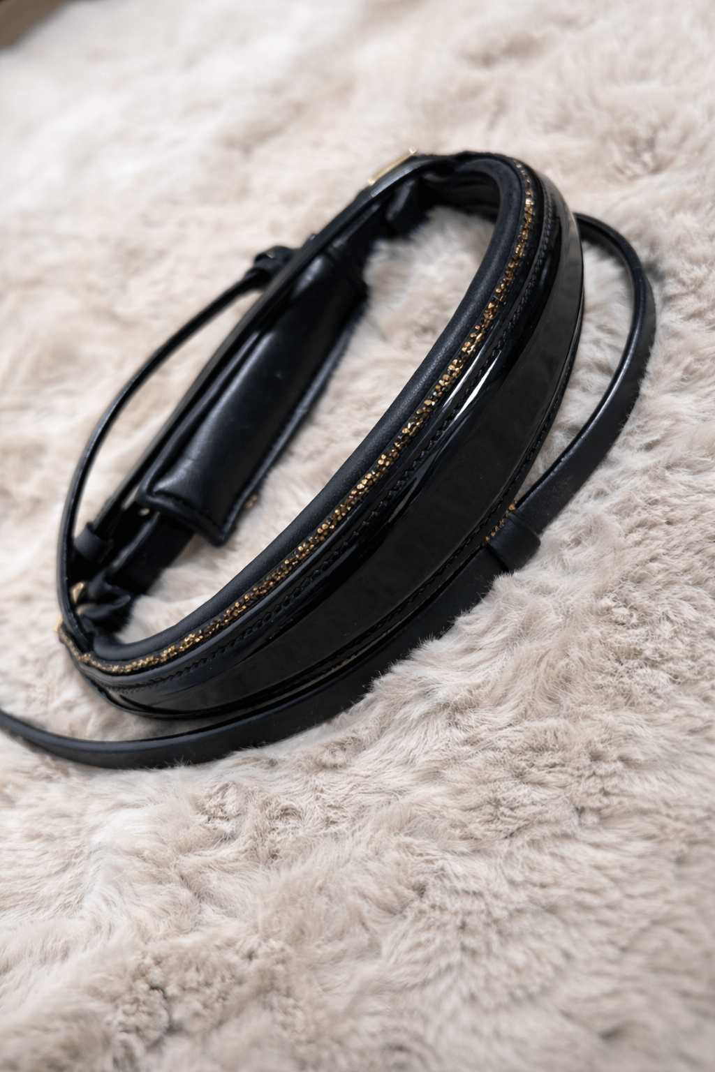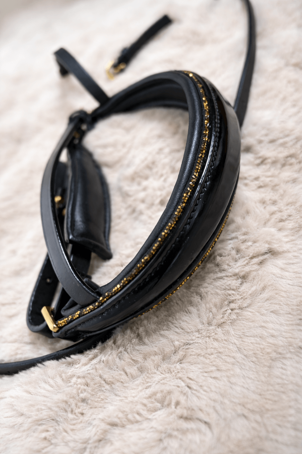 Neusriem zwart lak met gouden glitterrand maat Full.