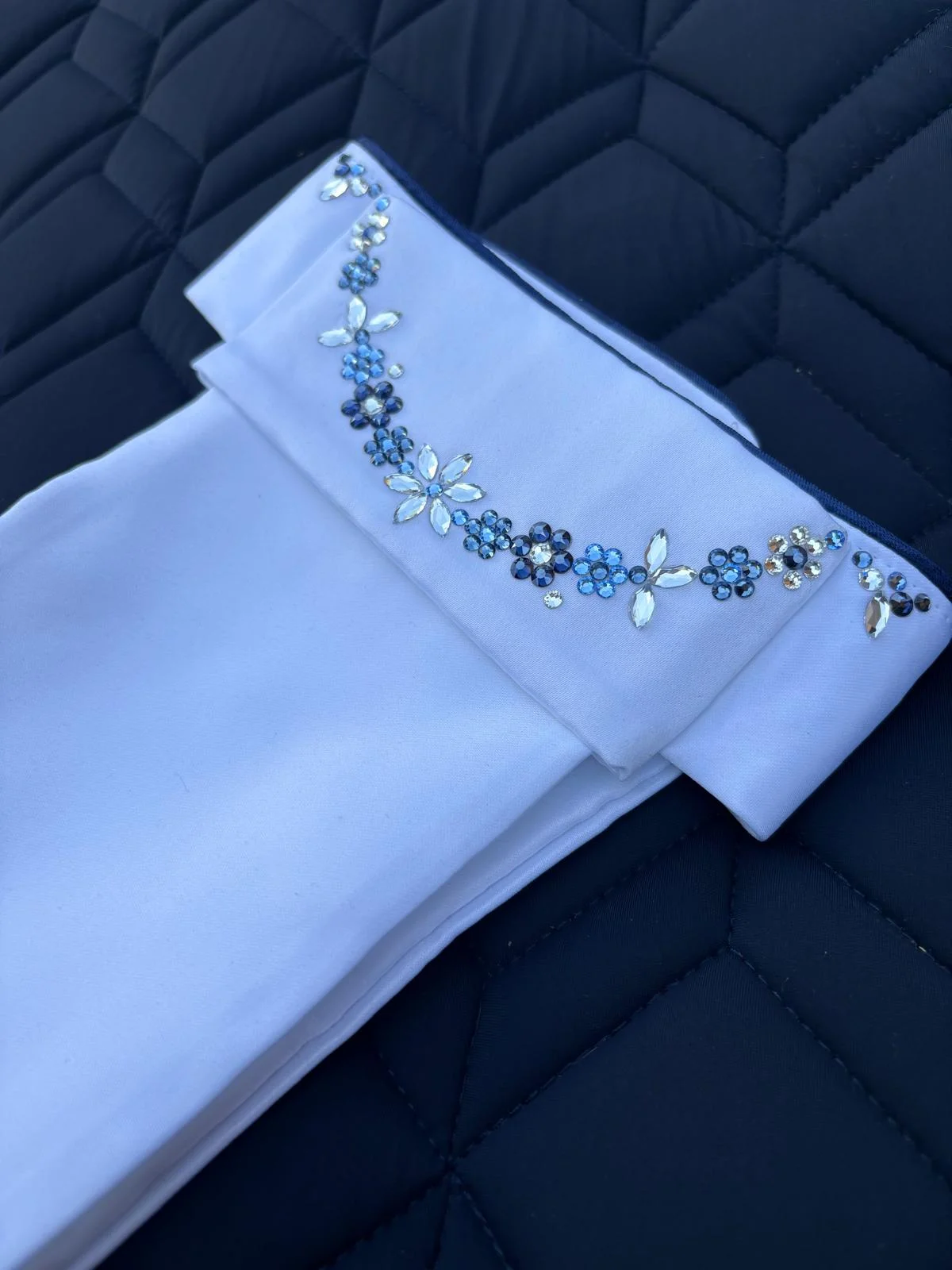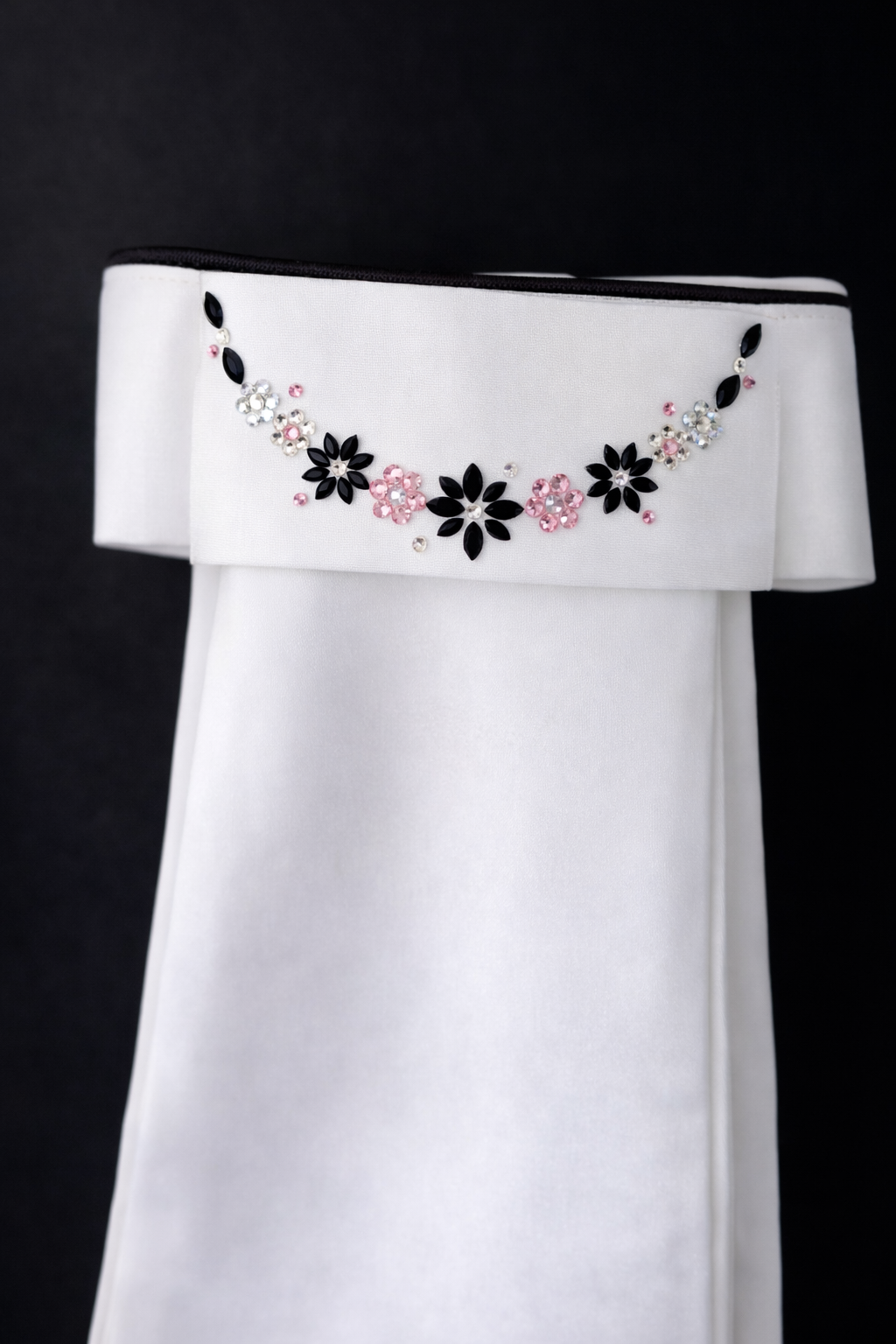 Op de website en onze social media zie je voorbeelden van plastrons. Je hebt de keuze tussen een plastron met op de voorkant steentjes, of een plastron met op de voorkant en langs de rand steentjes.