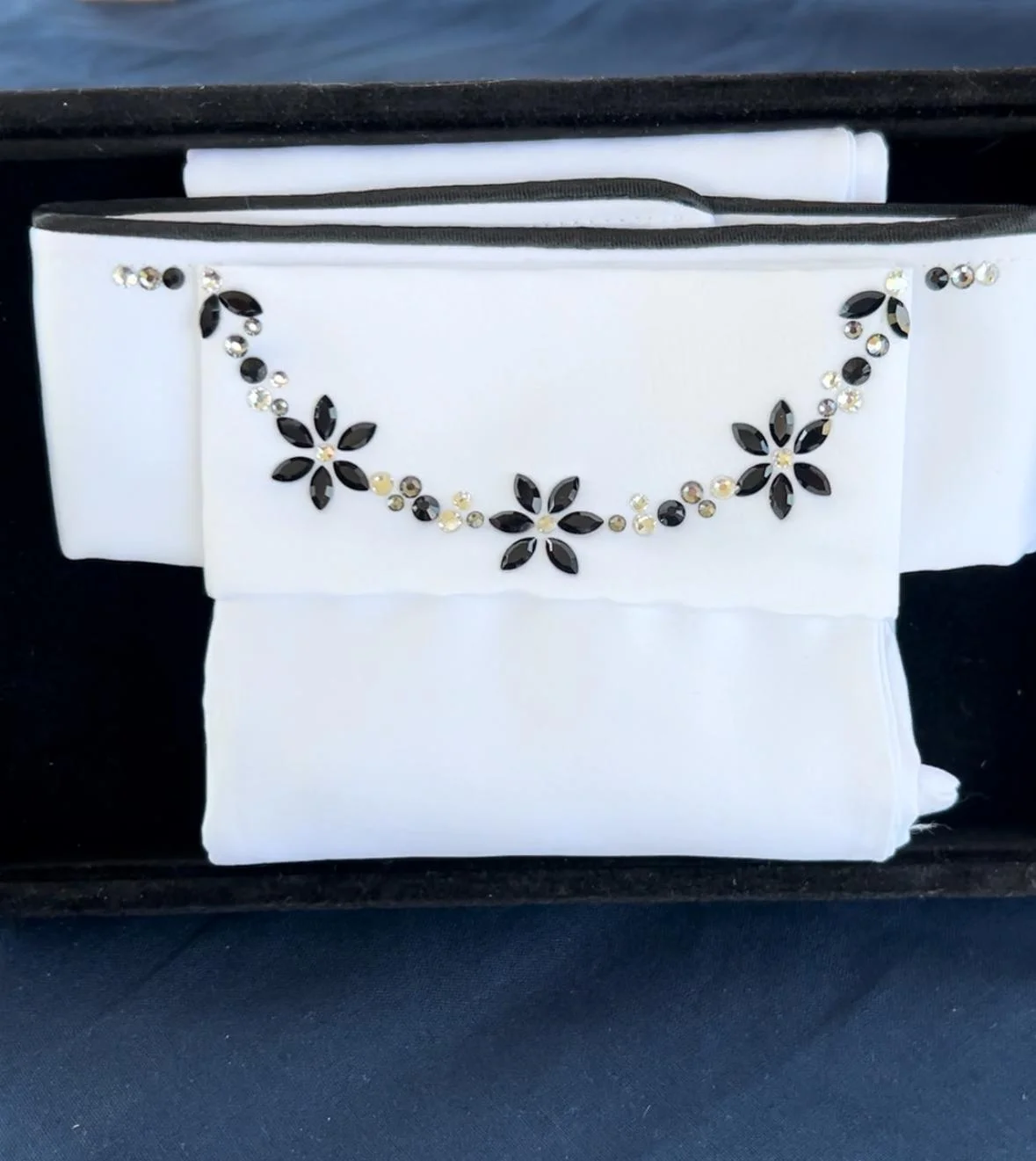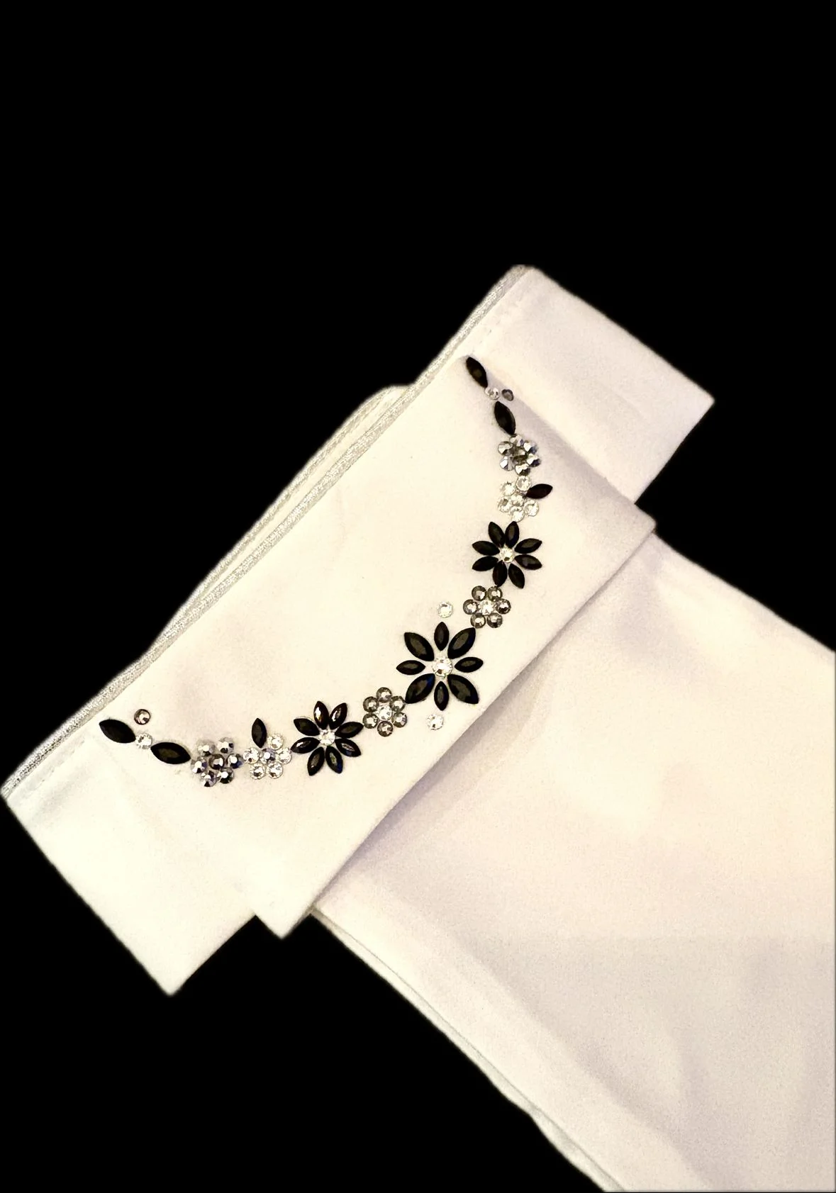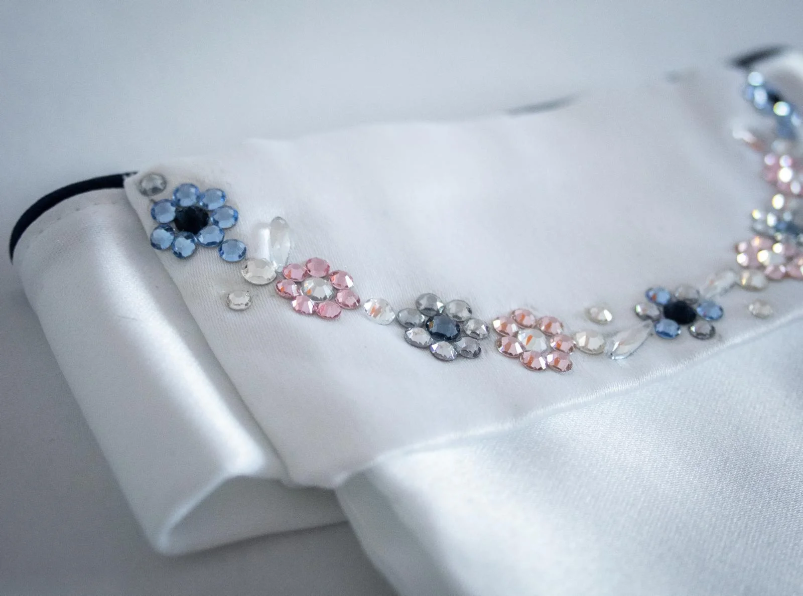 Samen kijken we welke kleur steentjes het beste past bij jouw wensen en design. Je kan bij kleur de kleuren toevoegen. Ik neem altijd nog contact met je op voordat ik de plastron maak. Zo weten we zeker dat ik de juiste kleur gebruik.