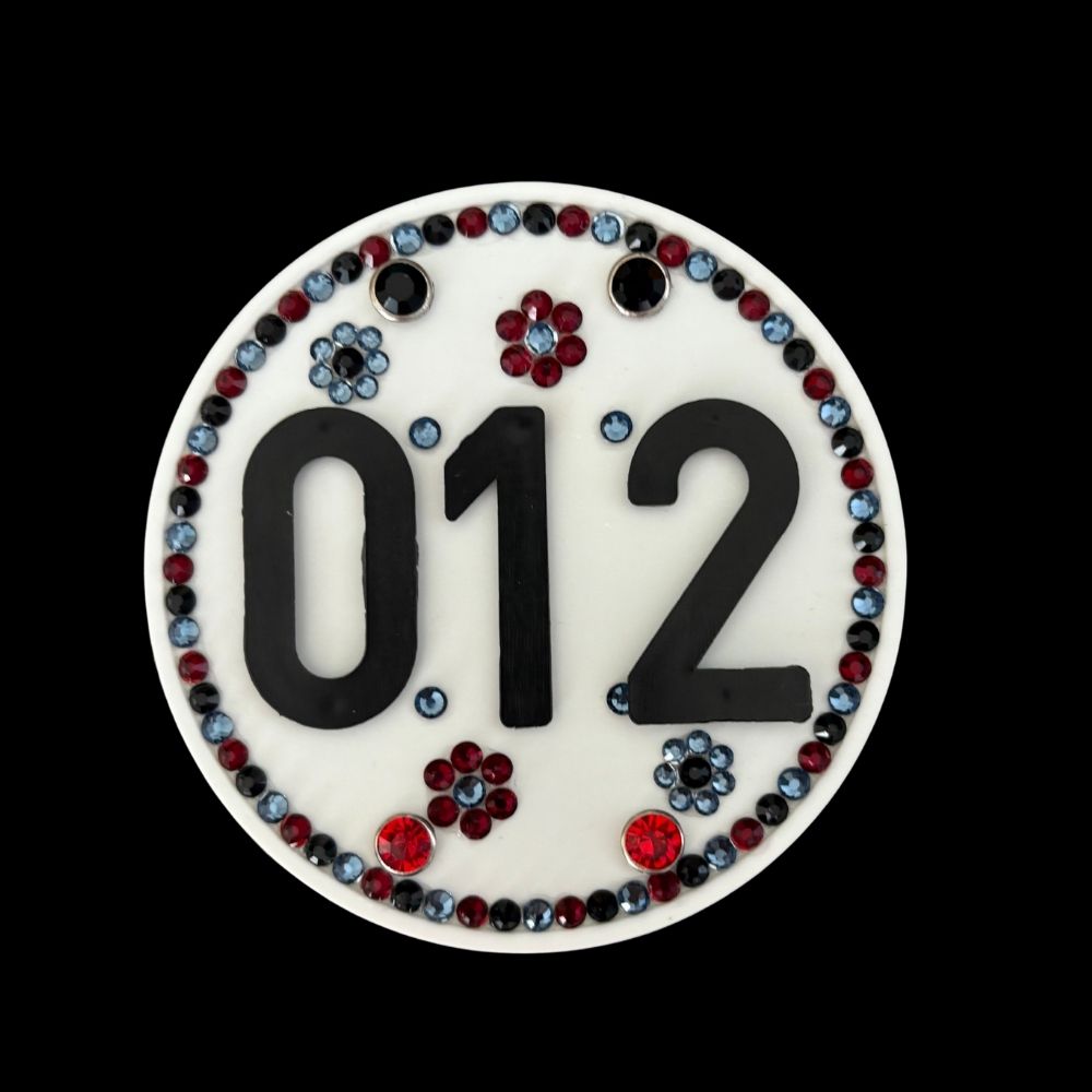 Hoe leuk is het dan om een wedstrijdnummer te hebben die matcht met jouw outfit. Frontrow Design heeft daarom vanaf nu deze wedstrijdnummers ook in haar assortiment. De steentjes die wij hiervoor gebruiken zijn luxe steentjes, ze zijn vergelijkbaar met Swarovski.