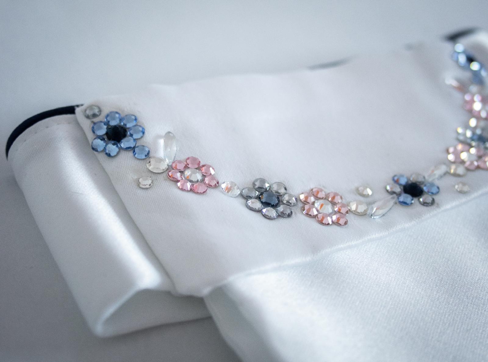 Dit is een standaard plastron met extra steentjes op de kraag.
